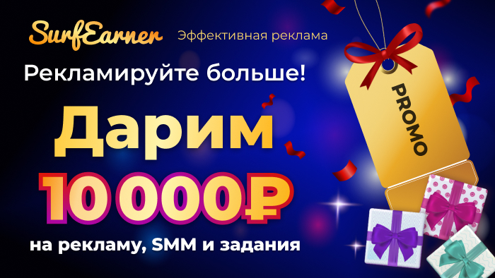 Заряжаемся весенним позитивом и дарим ВСЕМ по 10 000 ₽ на любую Рекламу, Трафик, Задания и SMM-раскрутку в SurfEarner до 10 апреля 2026.