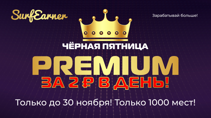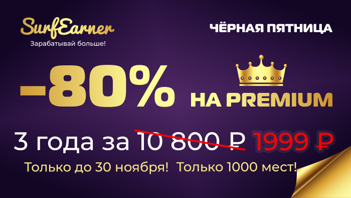 Чёрная пятница в SurfEarner! Дарим 10 000 ₽ на SMM, рекламу, трафик и задания!