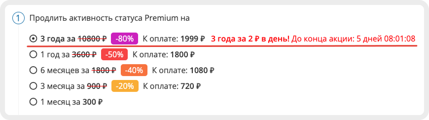 Активируйте статус PREMIUM на 3 года всего за 1999 рублей (вместо 10 800 ₽)