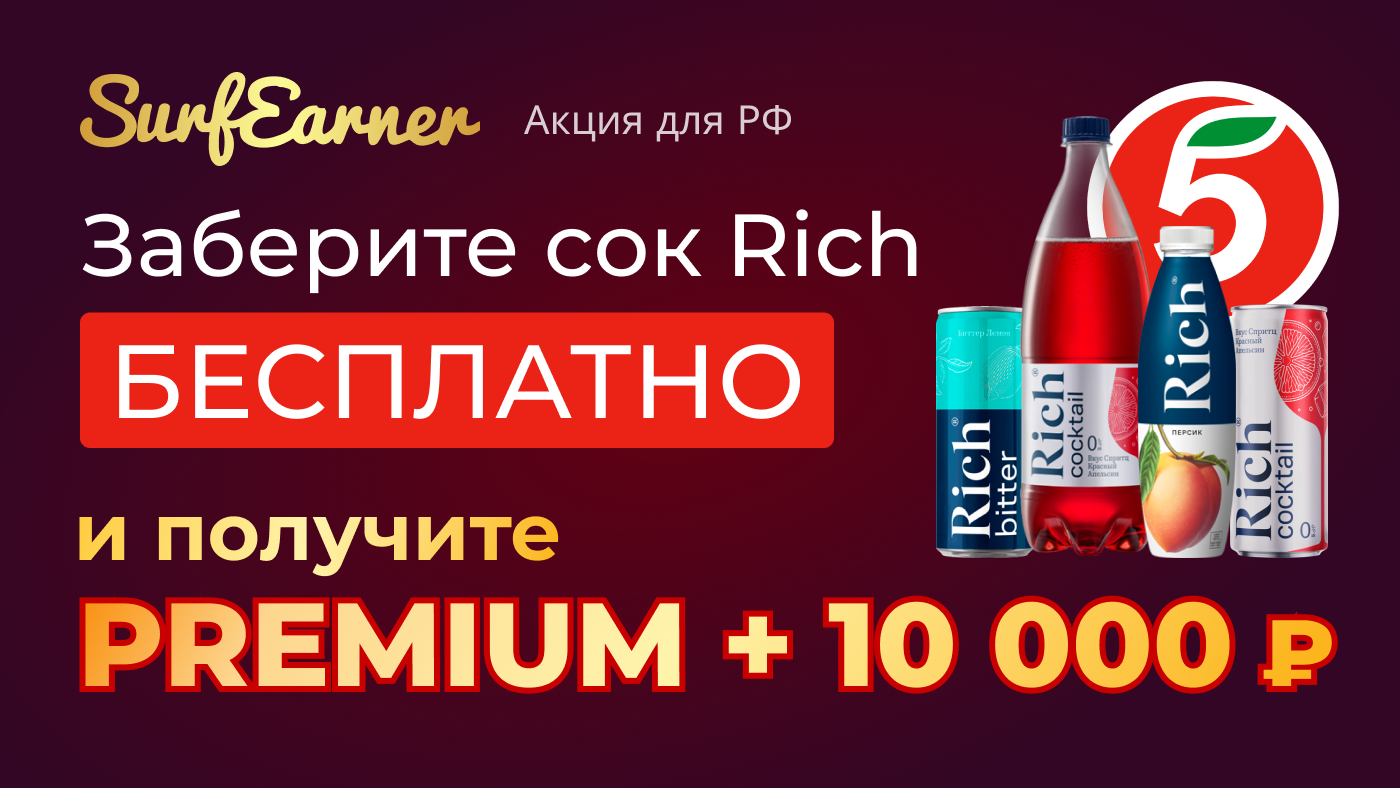 😱 Чтооо?! Месяц PREMIUM + 10 000 ₽ за то, что вы бесплатно заберете сок Rich в Пятерочке? 😮